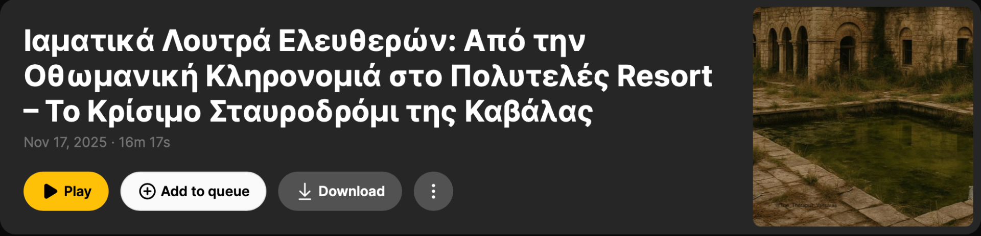 Spreaker.com: Ιαματικά Λουτρά Ελευθερών, Από την Οθωμανική Κληρονομιά στο Πολυτελές Resort – Το Κρίσιμο Σταυροδρόμι της Καβάλας