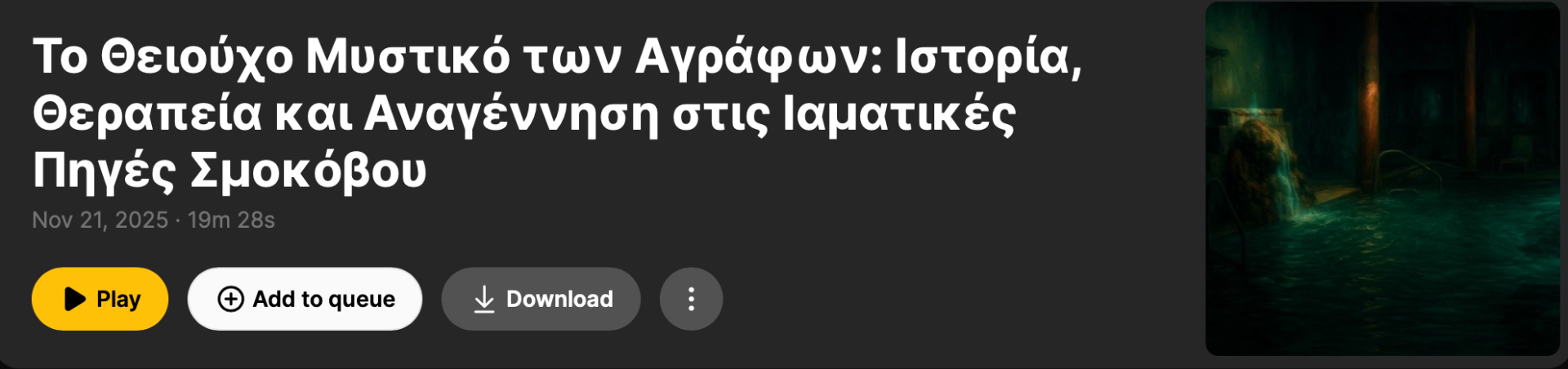 Spreaker.com: Το Θειούχο Μυστικό των Αγράφων' Ιστορία, Θεραπεία και Αναγέννηση στις Ιαματικές Πηγές Σμοκόβου